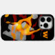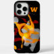 Baños de color dorado con un toque de rojo sobre pintura abstracta negra y esperando a que su inicial lo convierta en un funda personalizado y único.