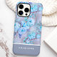 Esta funda de teléfono elegante presenta un diseño de acuarela de rosas azules de moda acentuadas con un verde suave sobre un fondo gris lavanda apagado. El arreglo floral elegante emana sofisticación y encanto, perfecto para aquellos que adoran diseños femeninos y modernos. Una placa de nombre blanca personalizable en una banda azul fresca añade un toque personal elegante, lo que hace que esta funda sea ideal para el uso diario o como un regalo considerado.