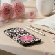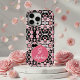 Funda iPhone 16 Pro Max Stylish pink Flowers on black pattern Custom names