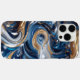 Funda iPhone 16 Pro Max Textura de mármol 3D Deep Blue Gold Swirl de lujo,