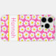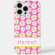 This iphone 16 pro max phone case is so cute and girly! It's modern trendy daisy floral pattern with multi-sized white and yellow daisies on a pink background and your name in a fun trendy font will go with everything! It will look fabulous on your phone!