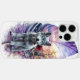 Whimsy and wonder bloom in this dreamy phone case featuring a gray wolf pup with green eyes holding a red rose. A sweeping purple feather and sunset landscape complete the magical scene — perfect for romantics and nature lovers.