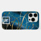 Funda iPhone 16 Pro Monograma Blue Black Paint Gold Swirls Florece