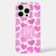 Funda iPhone 16 Pro Monograma de El día de San Valentín cardíaco rosad