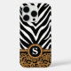 Funda iPhone 16 Pro Monograma de impresión de cebra y leopardo
