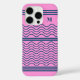 Funda iPhone 16 Pro Monograma de patrón de franjas onduladas azul y ro