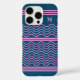 Funda iPhone 16 Pro Monograma de patrón de franjas onduladas azul y ro