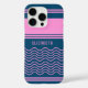 Funda iPhone 16 Pro Monograma de patrón de franjas onduladas azul y ro
