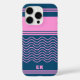 Funda iPhone 16 Pro Monograma de patrón de franjas onduladas azul y ro