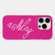 Añade un toque único a tu teléfono con este estuche de teléfono móvil monocromático rosa y elegante. Este moderno y sofisticado diseño presenta su propio nombre personal gracefully scripted en blanco. El fondo rosado caliente proporciona un fondo de moda mientras que el guión blanco agrega un toque de elegancia. Este funda monogramado personalizado es la forma perfecta de mostrar su estilo individual.