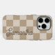 Elige tu color favorito para personalizar este patrón de corrector retro preppy en un estuche de teléfono. La imagen de mosaico sin soldadura crea un patrón monotónico de tablero de ajedrez utilizando el color de fondo de su elección. Cambie el color de fondo de la clase para crear su propio diseño. Personalizar el estilo de fuente del guión, agrega un monograma o mueve el nombre en el área de impresión.
