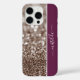 Funda iPhone 16 Pro Nombre EDITABLE Purpurina Cobre bokeh y borgoña