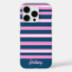 Funda iPhone 16 Pro Patrón de franjas azul y rosa personalizado