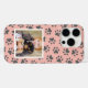 Este moderno estuche de teléfono con motivos para el amante de los animales presenta un color de fondo rosa rubor (que se puede personalizar) con un patrón de impresión de pata gris carbón y espacio de fotos cuadrado personalizado. Personaliza con tu perro, gato u otra imagen mascota favorita.