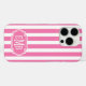 Customize this pink and white striped iPhone 16 pro case with your initials in a modern CAP font in white on pink. It's so modern and trendy yet preppy and classic!