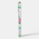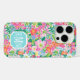 Customize this gorgeous modern colorful flower garden of flowers in pink, blue, orange, yellow and white iPhone 16 pro case with your your initials in a modern CAP font in white on blue. It's so vibrant and happy!