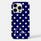 Tapa de teléfono celular de Personalizado azul oscuro con puntos de Polka blanco elegantes y una plantilla para el personalizable completo de tu nombre - incluso puedes cambiar el color si lo deseas.