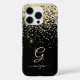 Funda iPhone 16 Pro Purpurina dorado y Monograma Nombre de guión blanc