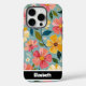 Esta encantadora cubierta de teléfono exhibe un artístico patrón floral pintado con flores en varios tonos rosa, naranja, amarillo y blanco, con hojas verde verde azuladas y oscuras, todo ello sobre un suave fondo azul. Las flores estilizadas crean una deliciosa estética inspirada en el jardín para tu equipo. Una elegante barra negra en la parte inferior ofrece personalización con un nombre como "Elizabeth"; si no quieres un nombre, puedes quitarlo y cualquier otro elemento que no te guste dentro de la herramienta de diseño, creando un accesorio de smartphone realmente hecho a medida.