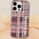 Funda iPhone 16 Pro Tartan Monogram Burgundy Red Blush Pink Stripes