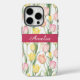 Los tulipanes amarillos y rosados pasteles en acuarela hacen un hermoso estuche para iPhone al estilo de primavera. Perfecto para cualquiera que ame las flores. Personalice su nombre en una banda rosa oscuro.