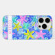 Customize this colorful watercolor starfish in blue, aqua, yellow and pink iPhone 16 pro case with your your name in a trendy modern CAP font in pink on white. It's so modern and trendy!