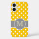 Funda iPhone 16 Puntos de polka amarillos y grises monogramados