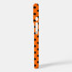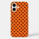 Fondo naranja y puntos negros, diseño de patrones de superficie textil de puntos de polka naranja
