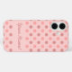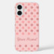 Este estuche de teléfono rosa presenta un patrón de puntos de polka con un espacio para agregar su propio nombre!