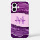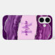 This striking, phone case has rich, purple agate with silver glitter veins running through it. It is personalized with your name and monogram in light and dark purple against a pink background. Definitely an eye catching phone case!