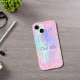 Un fondo holográfico de moda con colores pastel de unicornio y arcoiris en rosa, violeta, dorado rosa, verde menta. Decorado con goteo falso purpurina en oro rosa, rosa y morado. Personalice y agregue un nombre, y las iniciales de monograma, letras de color morado y blanco. ¡Un poco de luz diaria para alegrar el día!