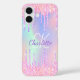 Funda iPhone 16 Purpurina arcoiris gotea monograma rosa