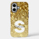 Funda iPhone 16 Purpurina Girly Gold Sparkles Monograma Nombre de