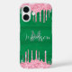 Funda iPhone 16 Purpurina Girona Perforación Verde Rosa Monograma