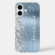 Funda iPhone 16 Purpurina plateado Luz Azul Metálico Giral Firma