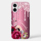 Funda iPhone 16 Purpurina rosa goteo floral metálico burdeos nombr