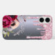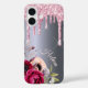 Funda iPhone 16 Purpurina rosado plateado gotea flores nombre