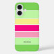 Funda iPhone 16 Rayas horizontales verdes y rosas monograma Funda-