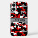 Customize this red, black, gray and white camouflage iPhone 16 case with your name in a trendy modern CAP font in black on gray. It's masculine and perfect for your favorite military, hunting, country or outdoorsman!