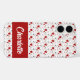 Funda iPhone 16 Red Black Modern Hearts Retro Monogram Name