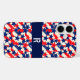 Red and white stripes with big blue stars are bold and bright on this iPhone case! Personalize with your name or initial in a wide blue band.
