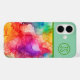 Esta divertida pintura de color arcoiris estilo tinta alcohol es perfecta para tu estuche de teléfono. El monograma puede cambiarse o eliminarse. Gráfico asistido por IA adquirido con licencia comercial. Pintura: DigitalCurio