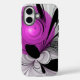Funda iPhone 16 Resumen Gris Negro Con Arte Fractal Magenta