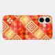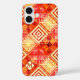 Estuche de teléfono personalizado que presenta un patrón abstracto geométrico festivo en colores cálidos con su monograma personalizado (opcional). Hermoso como regalo de Navidades o simplemente porque.