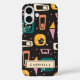 Retro Mid Century Mod Atómico Negro Nombre Personalizado Estuche Teléfono