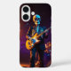 Una estrella de rock esqueleto atascada con guitarra eléctrica bajo luces espeluznantes. Ideal para los amantes de la música, fiestas de Halloween y vibrantes y divertidas vibraciones.