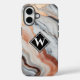 Funda iPhone 16 Rosa de Oro Elegante Mármol Negro Monograma