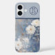 Funda iPhone 16 Roses blancos en fondo azul monogramados