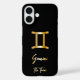 Funda iPhone 16 Rótulo Gemini Zodiac, negro y oro