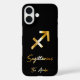 Funda iPhone 16 Rótulo Sagittarius Zodiac, negro y oro